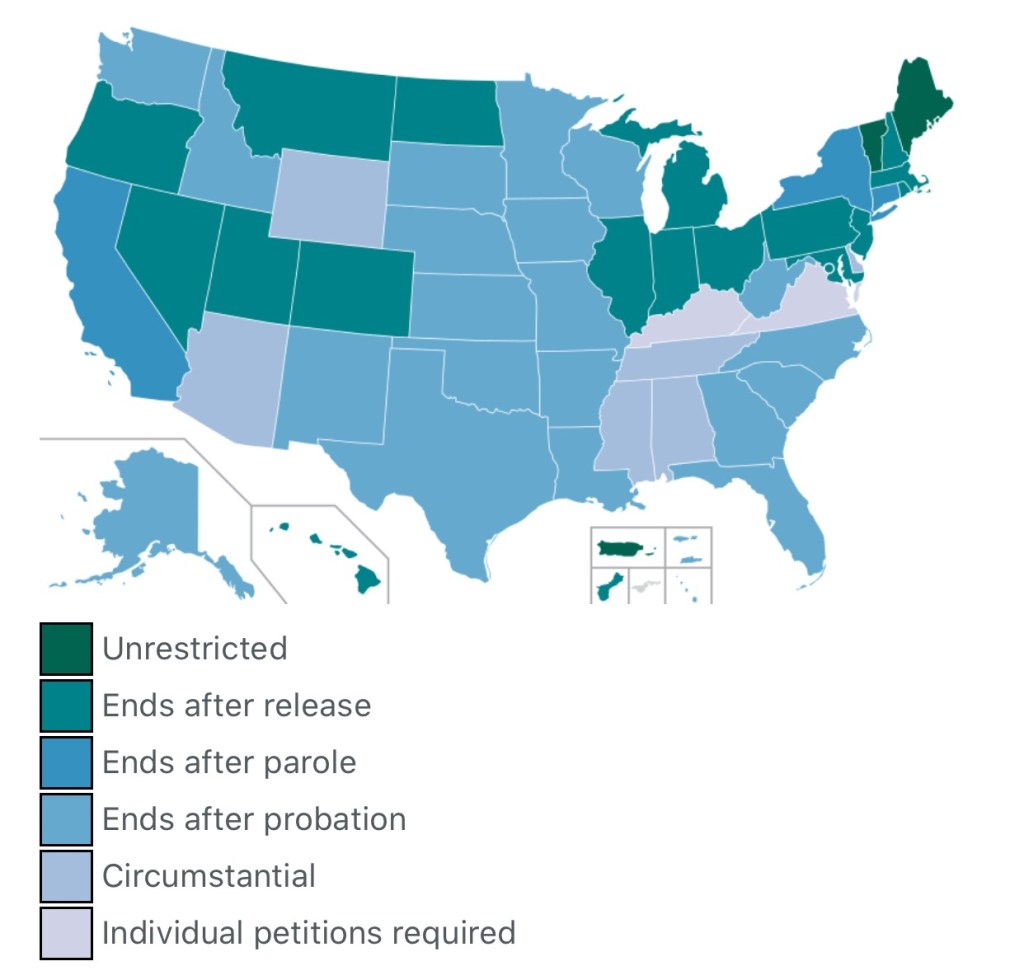 In the USA the prisonsystem and incarceration upheld the oppression of black people. Also known as mass incarceration. If you are convicted of a felony in the US you may lose your right to Vote. (Felony disenfranchisement) It varies from state to state if it is permanently or for a period of time. If you lose your right to vote, you also lose an important way to influence what happens in your country.